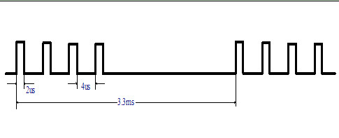 脈沖頻率:1)連續四個脈沖串時,如圖所示。f=300Hz(T=3.3ms)