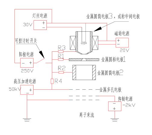 2. 燈絲電源:電流0~30A,電壓0~30V,電流紋波≤1%;