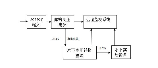 本系統中,海底觀測網岸基站產生的-10kV負直流電通過光電復合纜中的一根銅線傳輸到海底主接駁盒,通過接駁盒內部的DC/DC模塊進行轉換,得到接駁盒內部控制電路和海底觀測網傳感器的工作電壓。