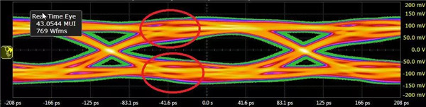 ? 傳輸線之間存在近端和遠(yuǎn)端串?dāng)_,導(dǎo)致眼圖閉合、抖動(dòng)變大;