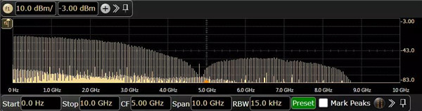 我們?cè)夹盘?hào)做FFT,信號(hào)幅度譜線也很清楚,信號(hào)是PRBS碼型,譜包絡(luò)呈現(xiàn)Sinc2(x)的形狀,按信號(hào)速率/碼型長(zhǎng)度等頻率間隔分布譜線。